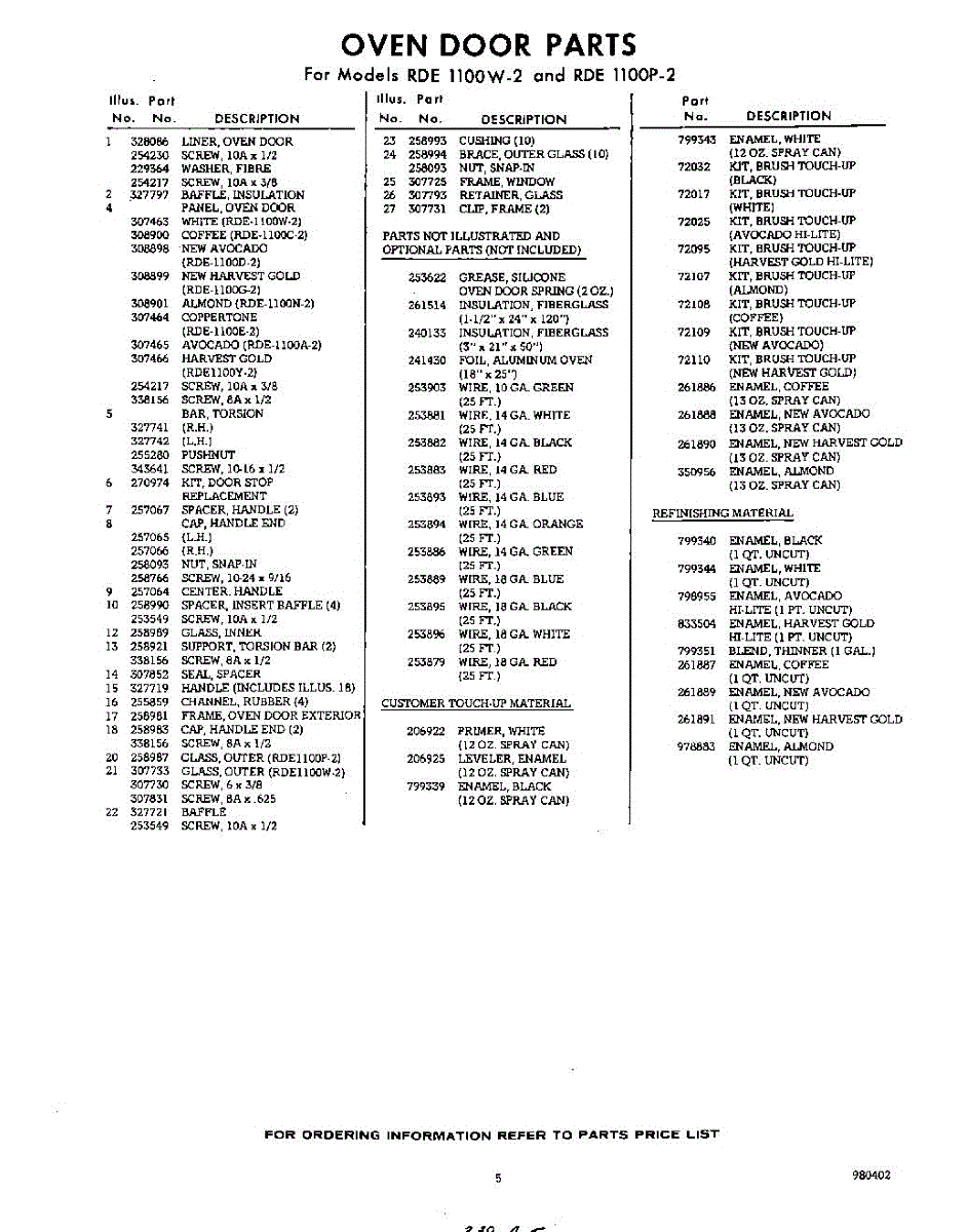 Parts for RDE1100W2