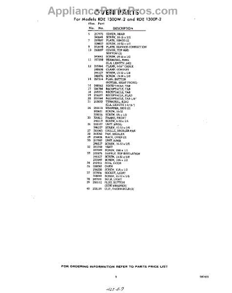 Parts for Whirlpool RDE1300W2: 03 - Section Parts