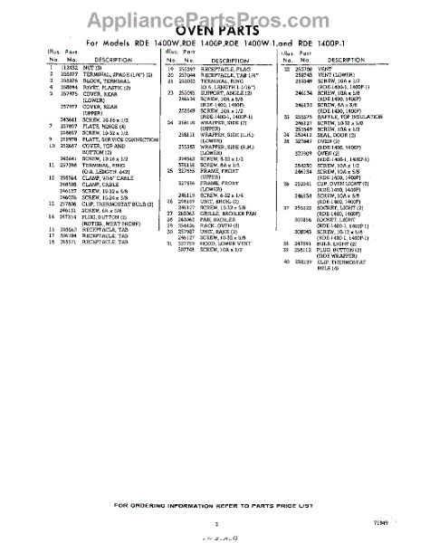 Parts for RDE1400W1