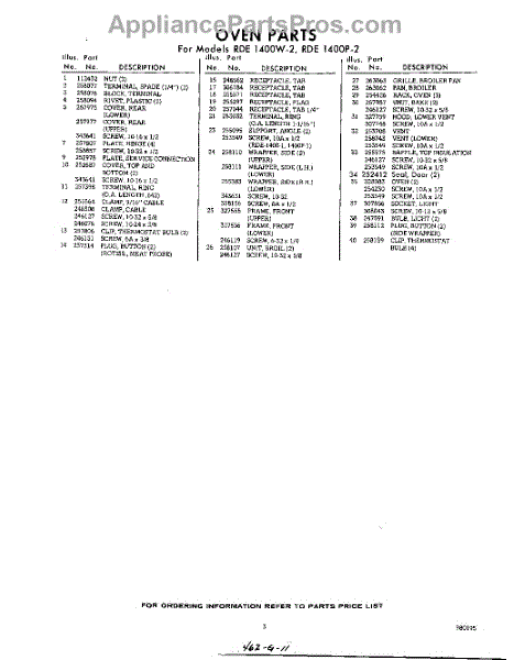 Parts for Whirlpool RDE1400W2: 03 - Section Parts