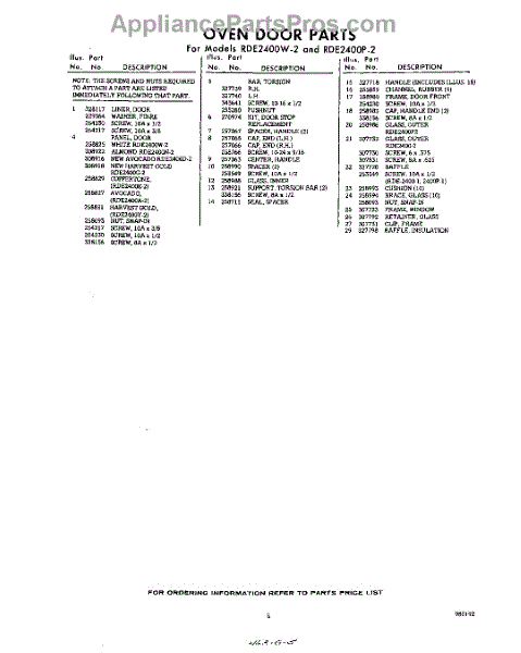 Parts for Whirlpool RDE2400W2: 05 - Section Parts