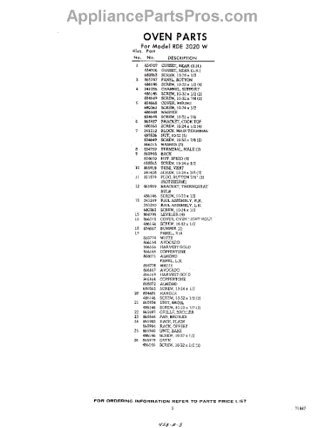 Parts for Whirlpool RDE3020W: 03 - Section Parts