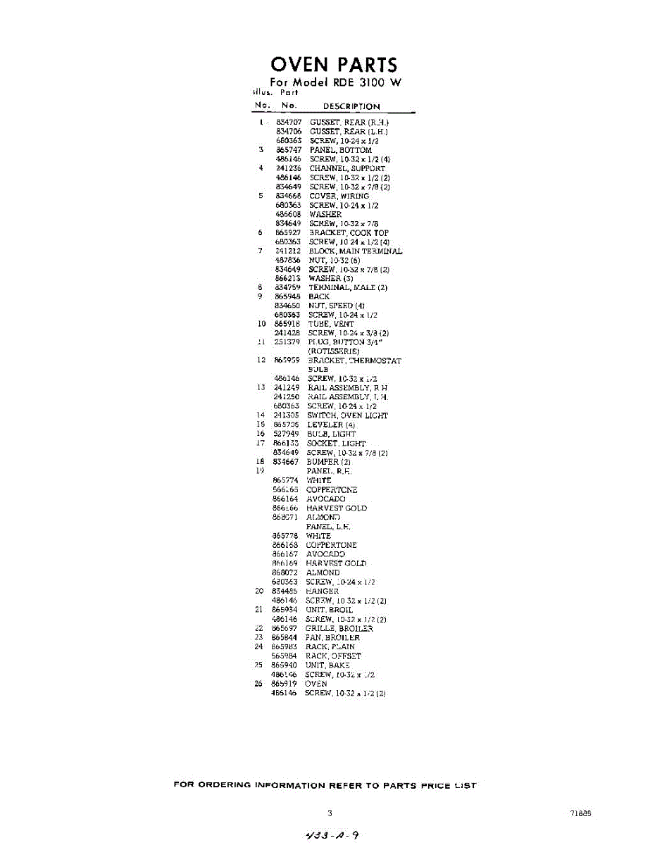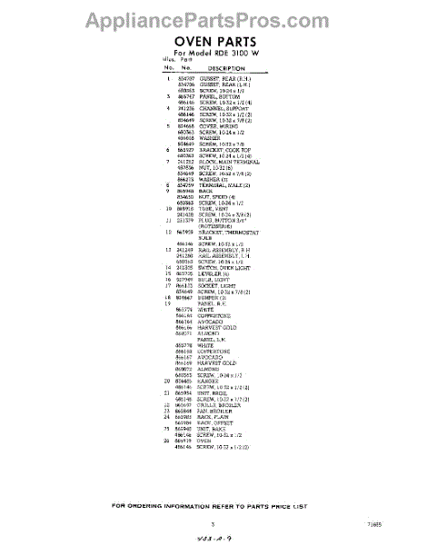 Parts for RDE3100W