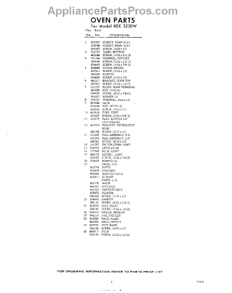 Parts for RDE3230W