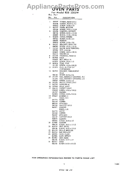 Parts for RDE3300W