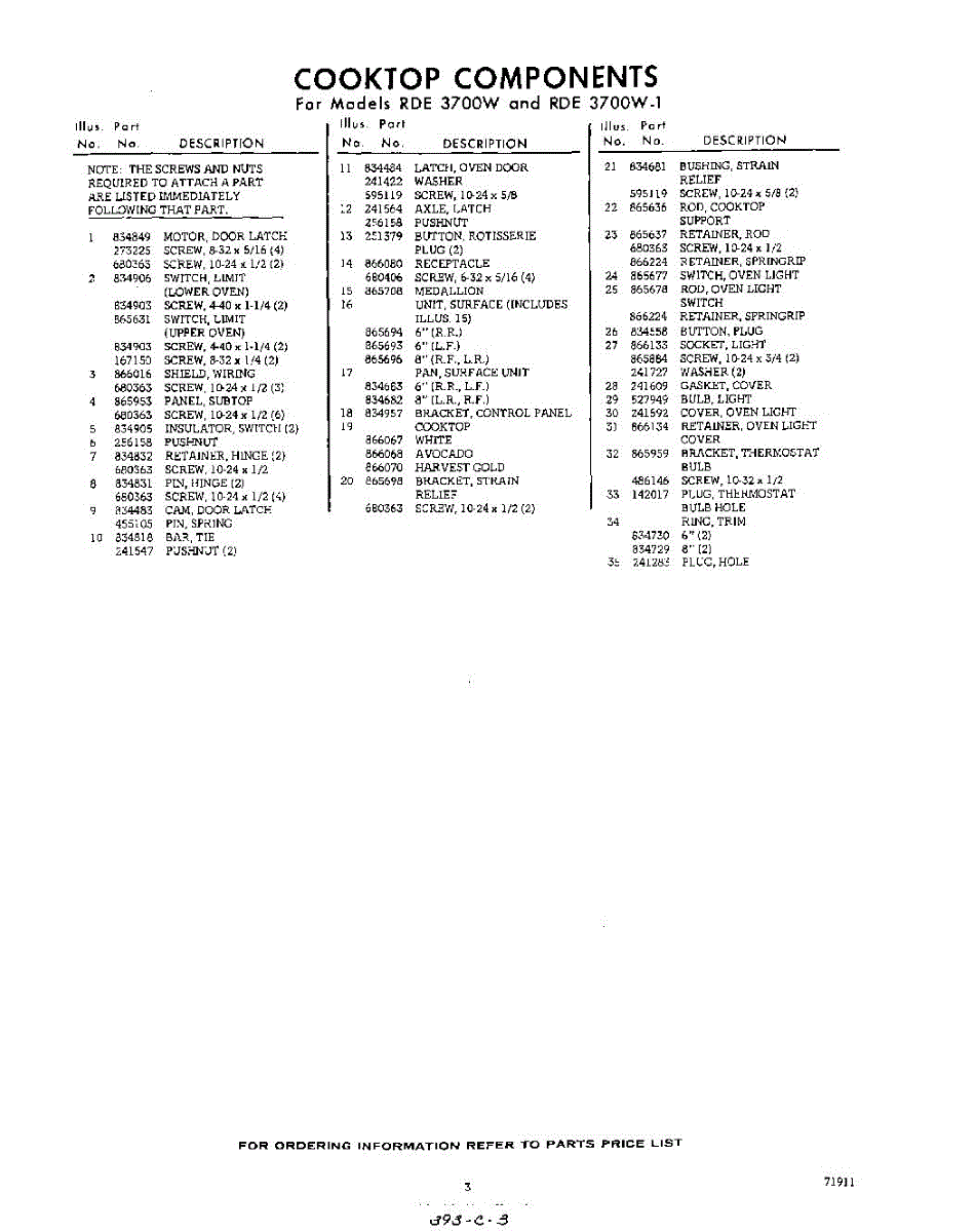 Parts for Whirlpool RDE3700W: 03 - Section Parts