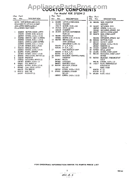 Parts for Whirlpool RDE3700W2: 03 - Section Parts