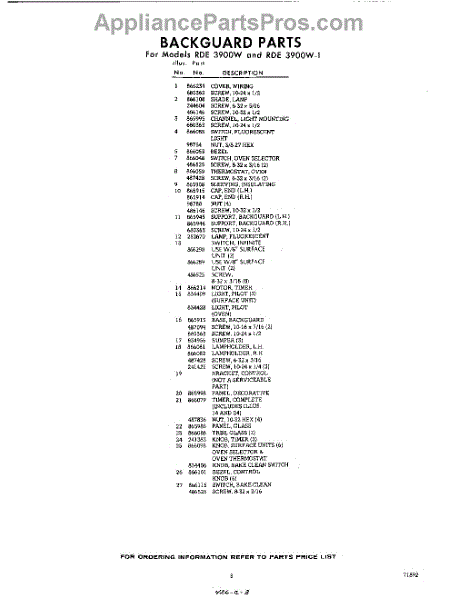 Parts for RDE3900W