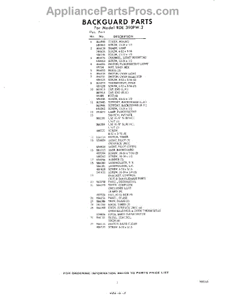 Parts for RDE390PW2