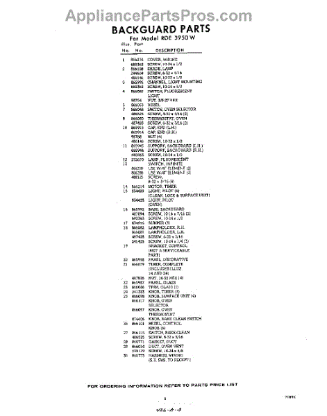 Parts for Whirlpool RDE3950W: 03 - Section Parts