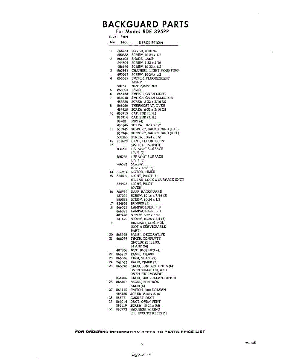 Parts for RDE395PP