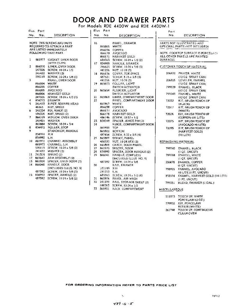 Parts for RDE4400W0