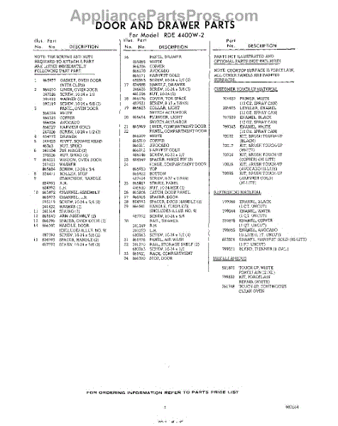 Parts for Whirlpool RDE4400W2: 05 - Section Parts