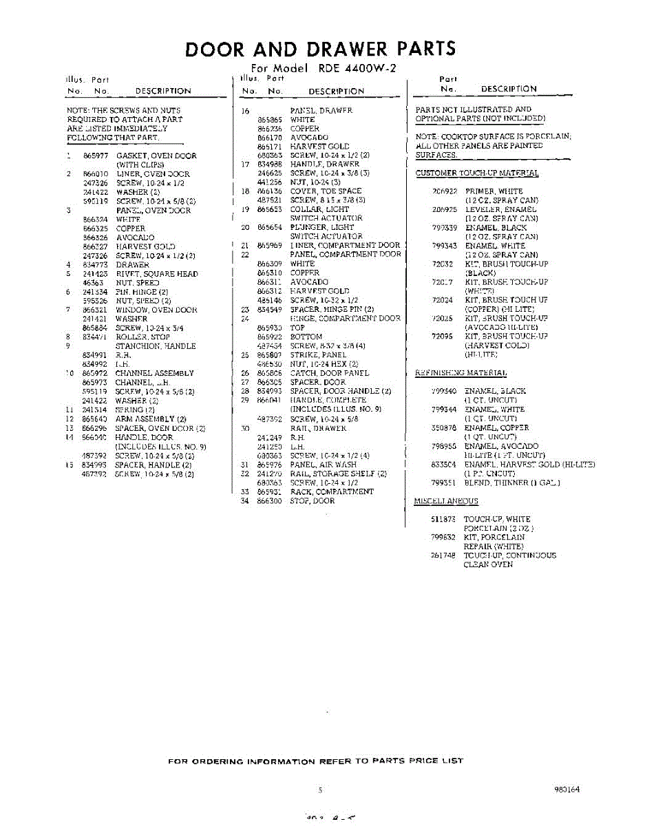 Parts for RDE4400W2