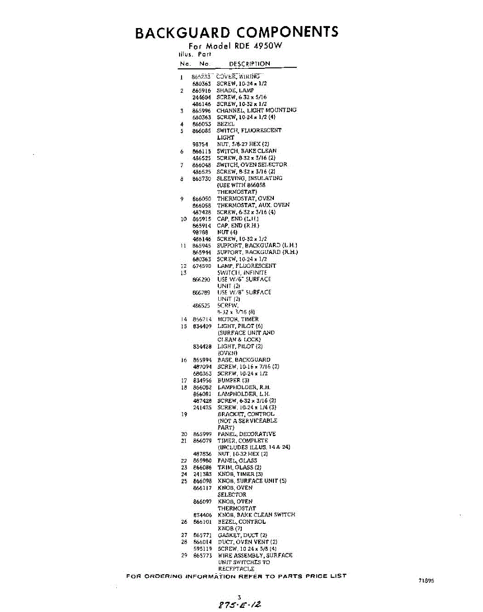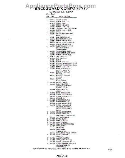 Parts for RDE4950W