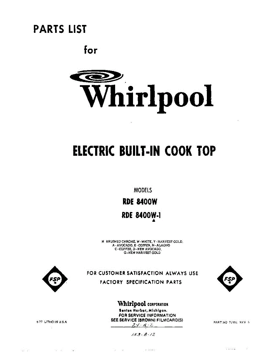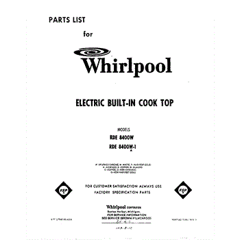 Parts for Whirlpool RDE8400W: 01 - Section Parts