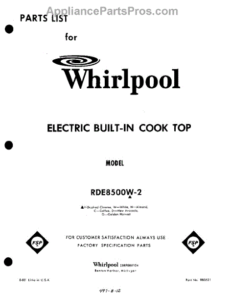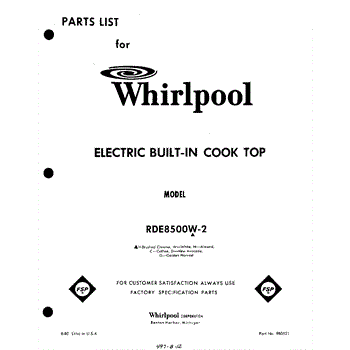Parts for Whirlpool RDE8500W2: 01 - Section Parts