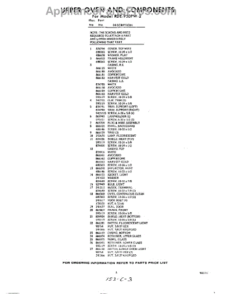 Parts for RDE950PW2