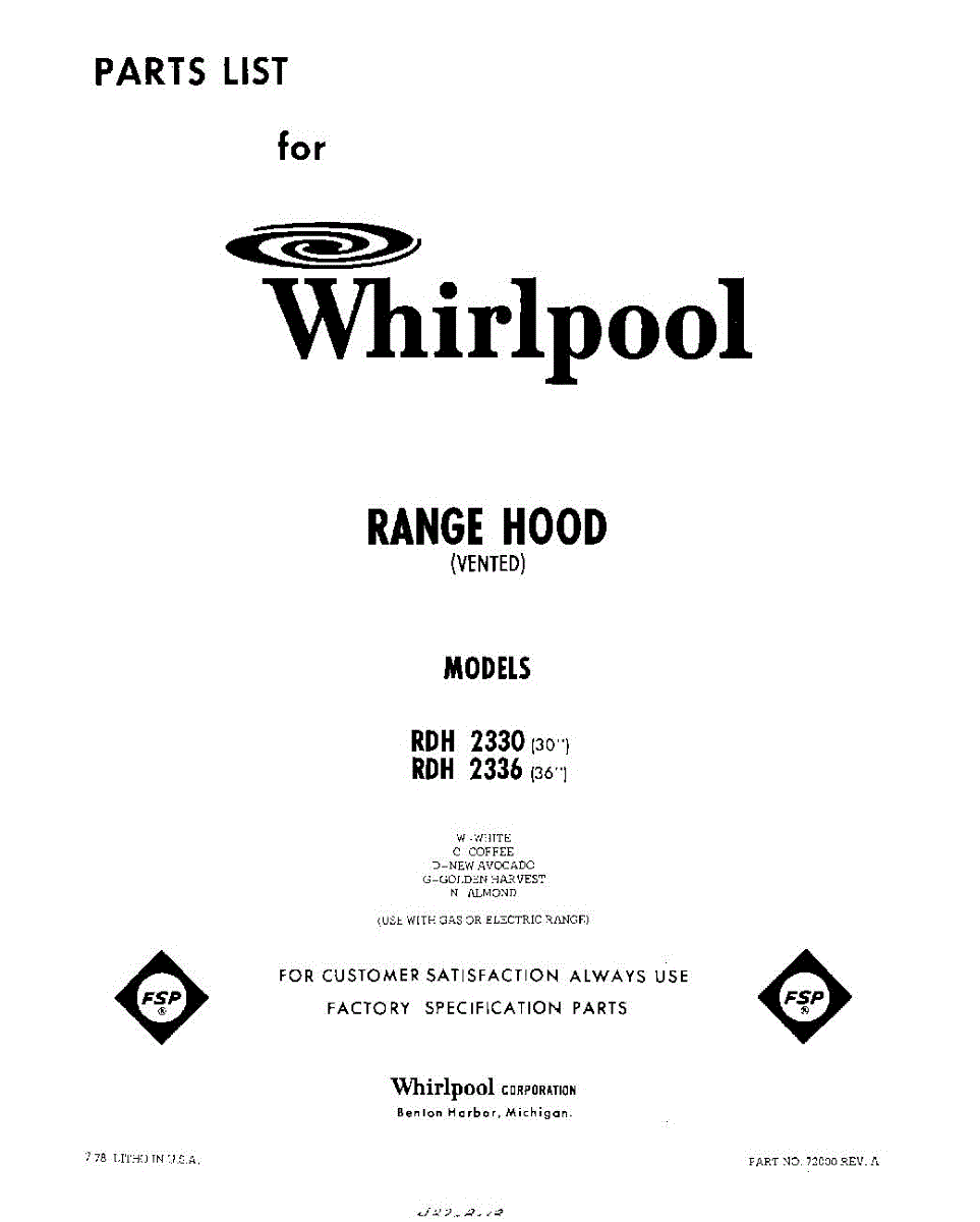 Parts for Whirlpool RDH2330: 01 - Section Parts
