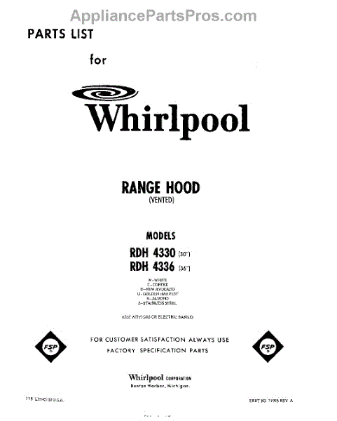 Parts for Whirlpool RDH4330: 01 - Section Parts