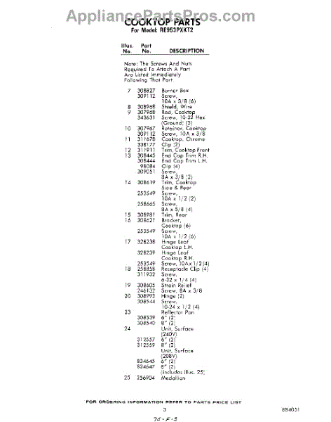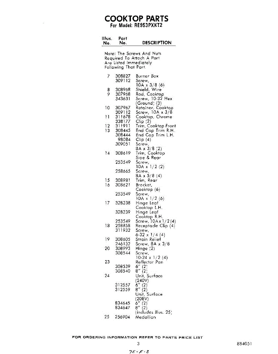 Parts for Whirlpool RE953PXKT2: 03 - Section Parts