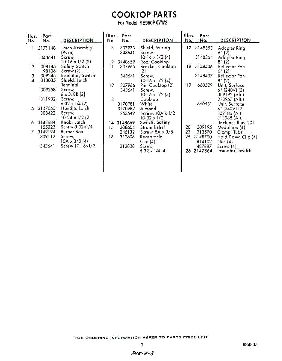 Parts for Whirlpool RE960PXVW2: 03 - Section Parts