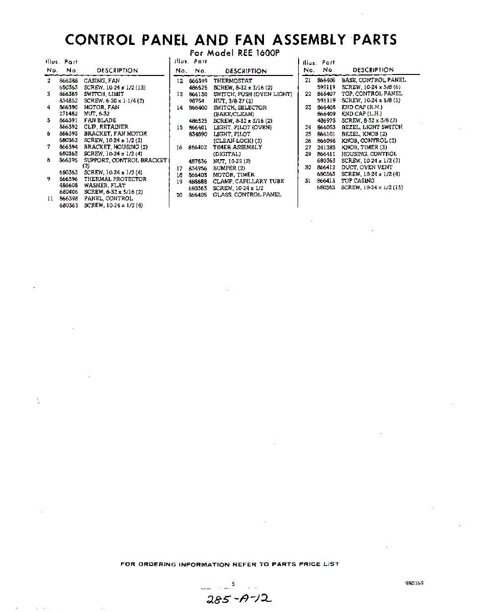 Parts for REE1600P