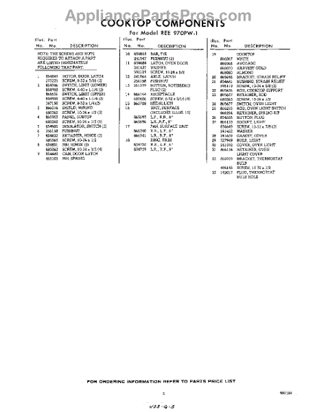 Parts for REE970PW1