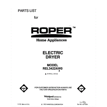 Parts for Whirlpool REL3422AL0: 01 - Section Parts