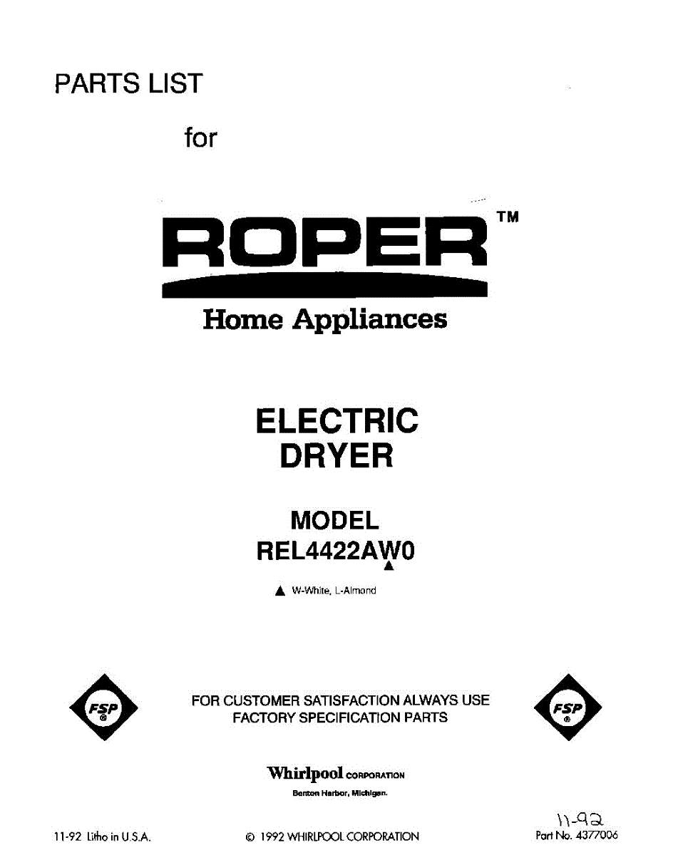 Parts for Whirlpool REL4422AL0: 01 - Section Parts