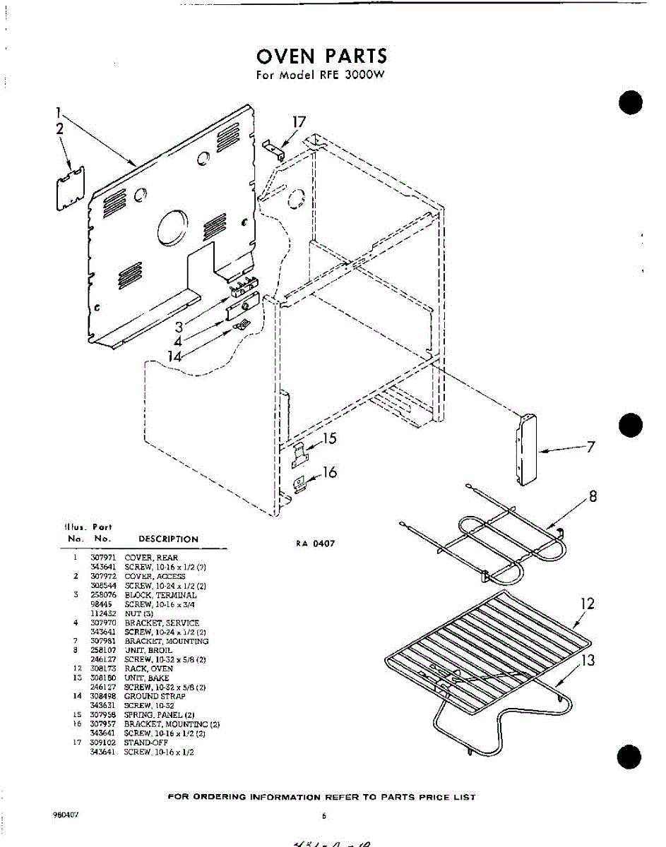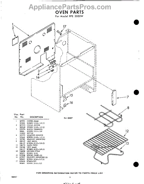 Parts for RFE3000W