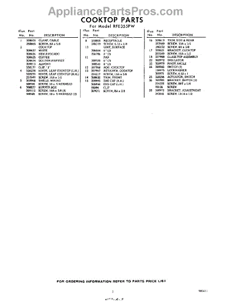 Parts for RFE355PW