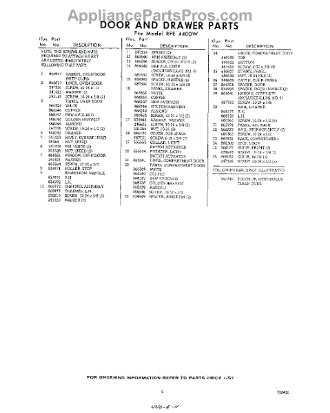 Parts for Whirlpool RFE4400W: 05 - Section Parts