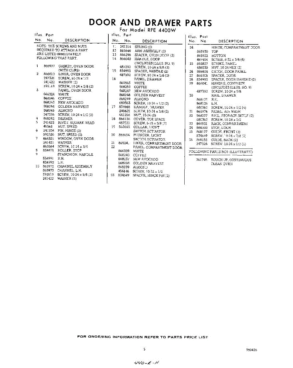 Parts for RFE4400W