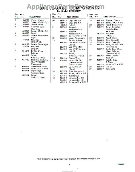 Parts for Whirlpool RFE4900W: 03 - Section Parts