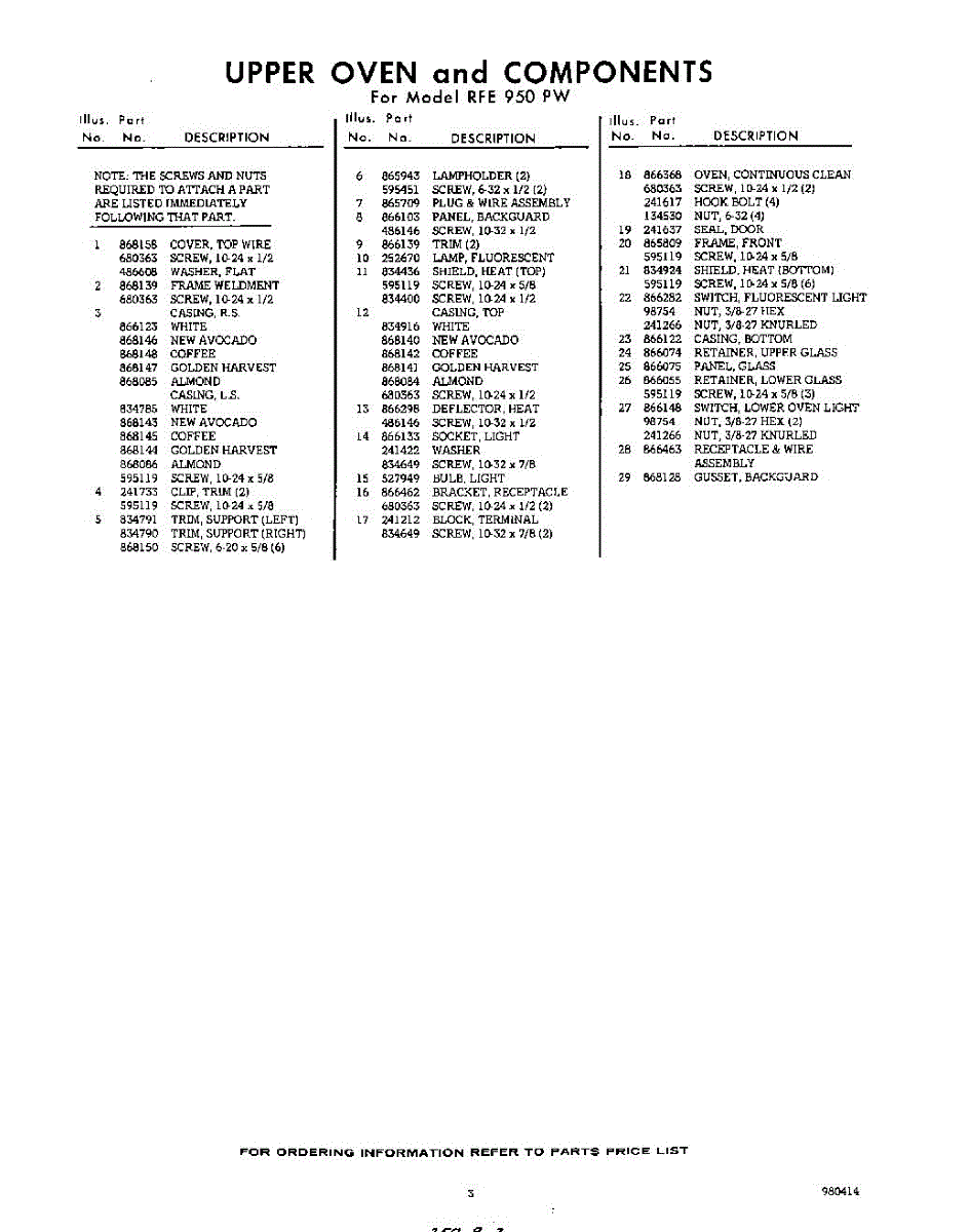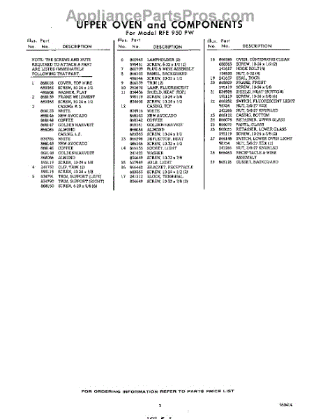 Parts for RFE950PW