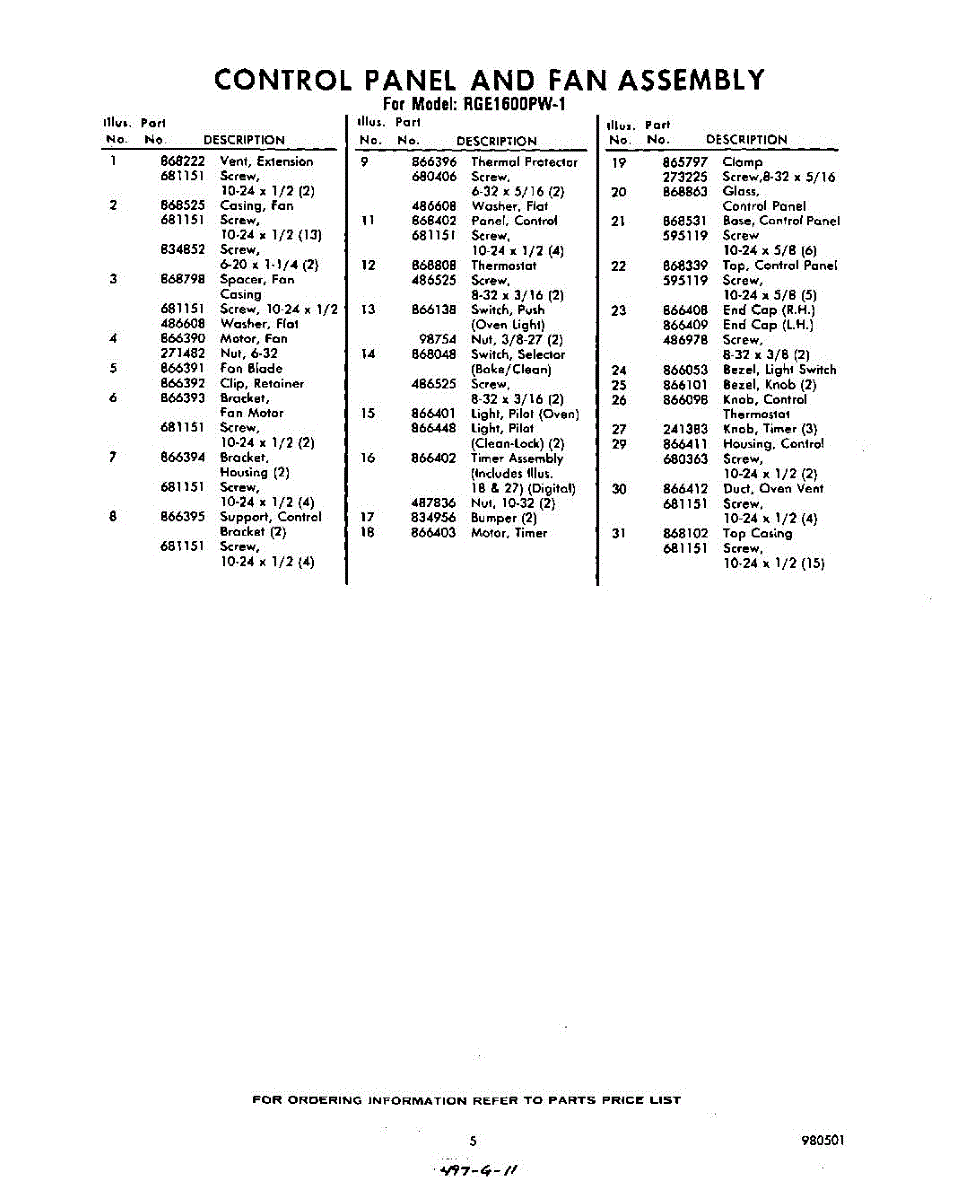 Parts for Whirlpool RGE1600PW1: 05 - Section Parts
