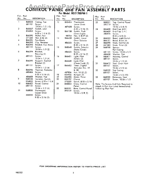 Parts for Whirlpool RGE1700PW1: 05 - Section Parts