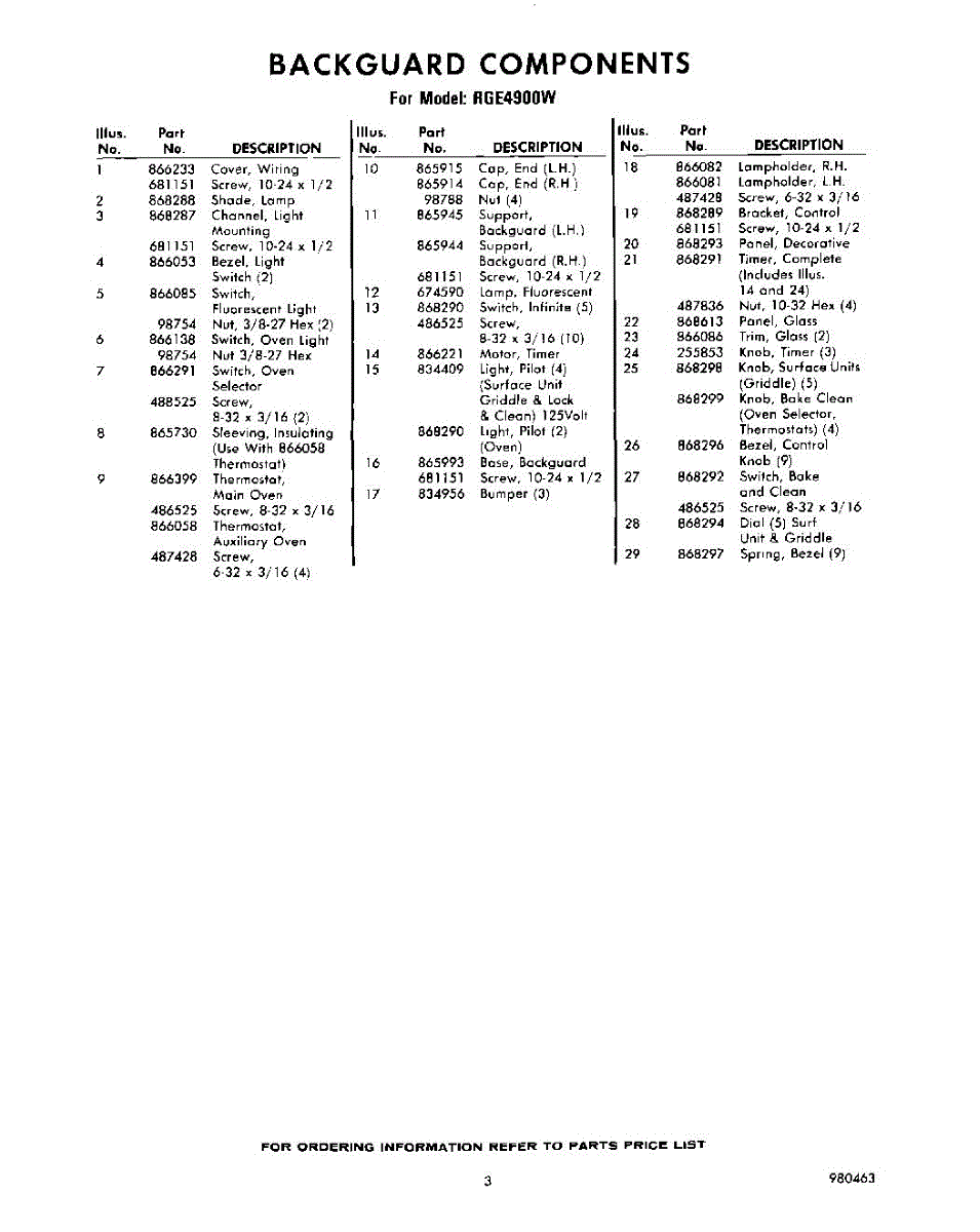 Parts for Whirlpool RGE4900W: 03 - Section Parts