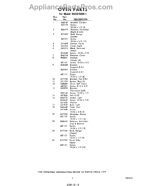 Parts for Whirlpool RGE6700W1: 03 - Section Parts
