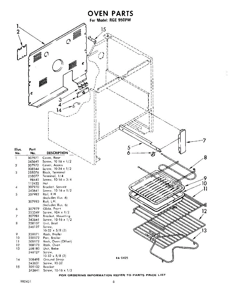 Parts for Whirlpool RGE950PW: 06 - Section Parts