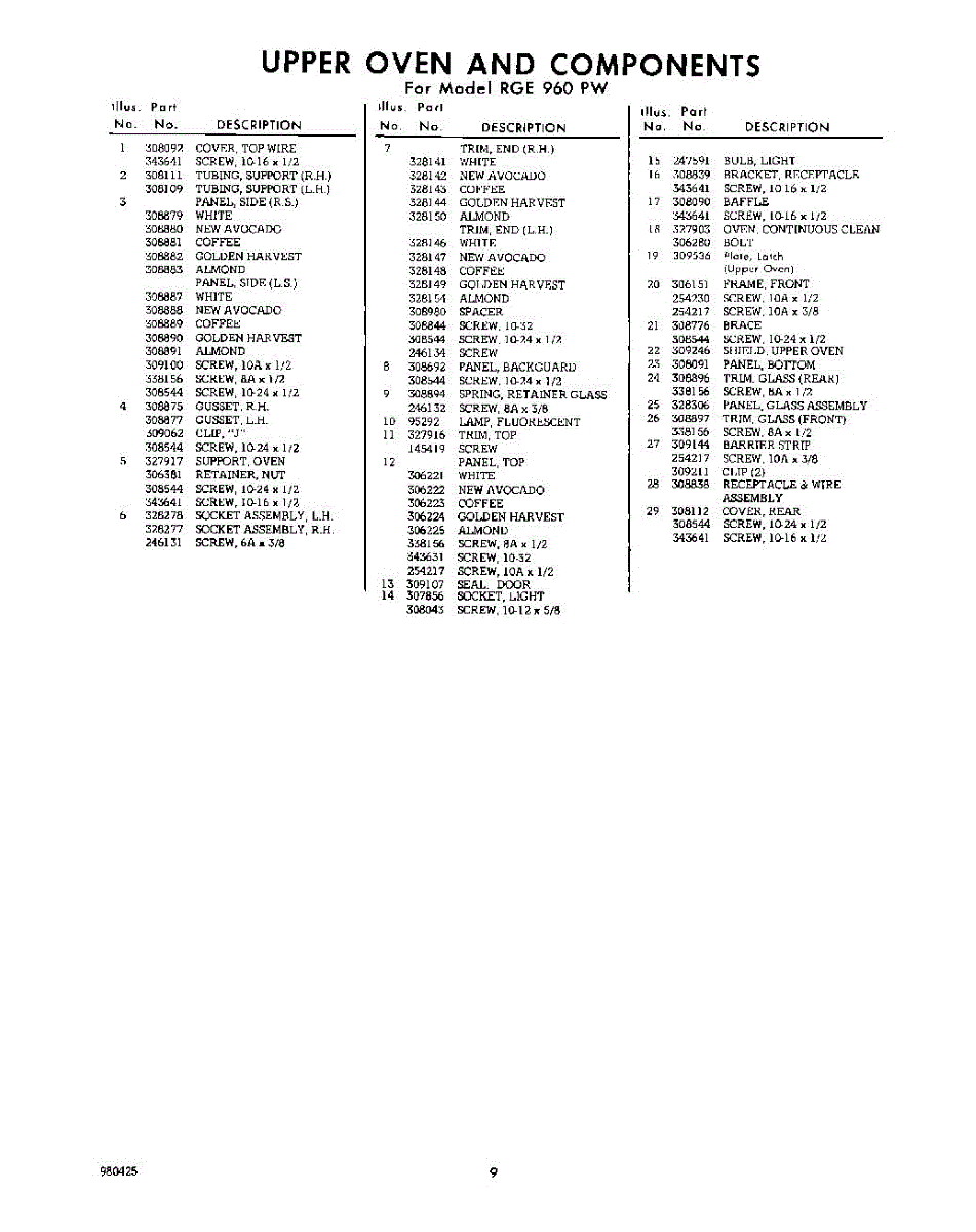 Parts for Whirlpool RGE960PW: 09 - Section Parts