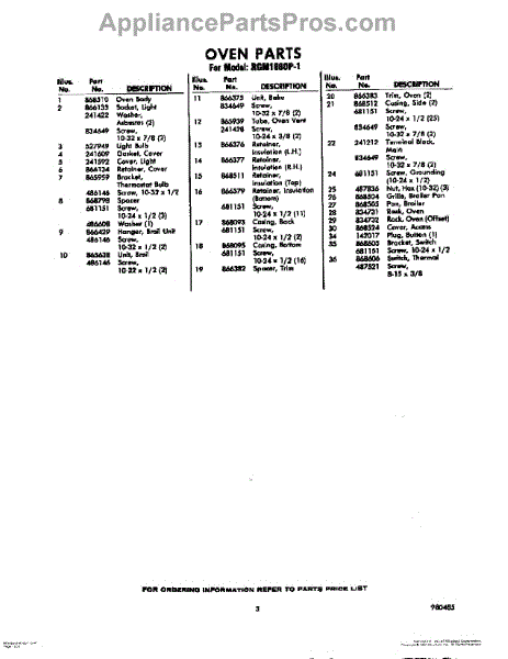 Parts for Whirlpool RGM1880P1: 03 - Section Parts