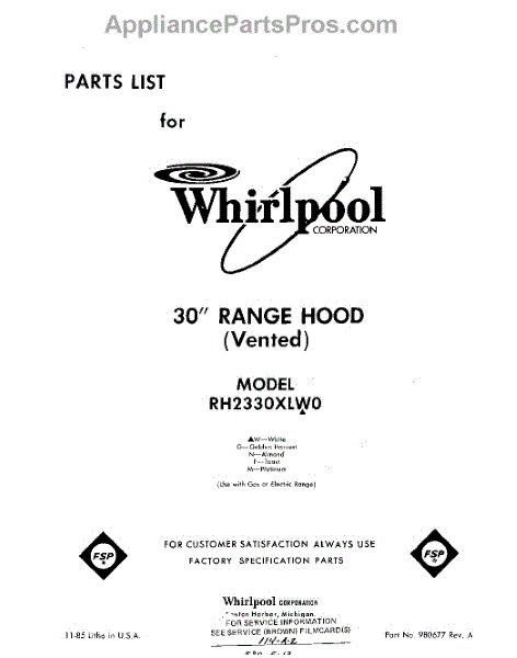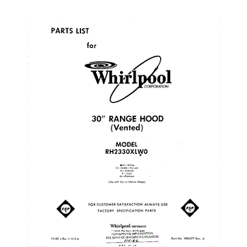 Parts for Whirlpool RH2330XLW0: 01 - Section Parts