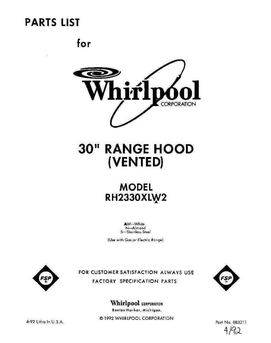 Parts for RH2330XLW2