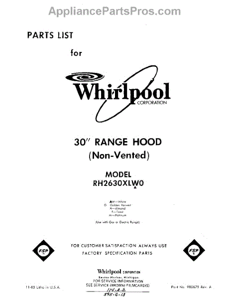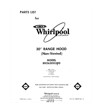 Parts for Whirlpool RH2630XLW0: 01 - Section Parts
