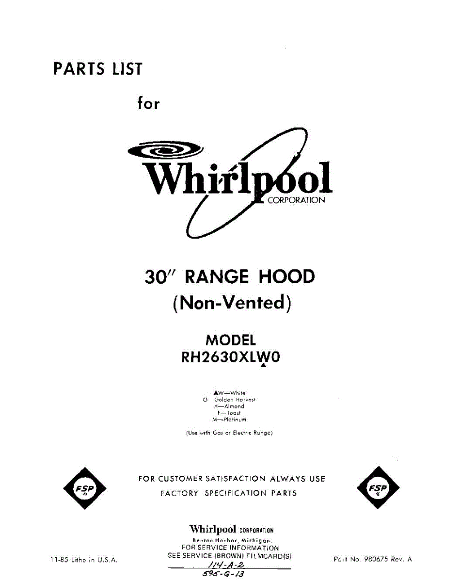 Whirlpool Parts