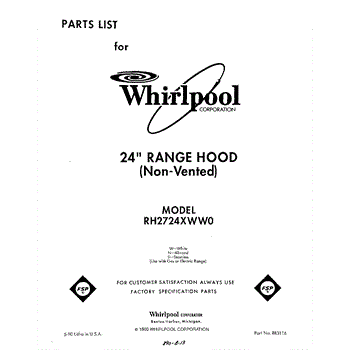 Parts for Whirlpool RH2724XWN0: 01 - Section Parts