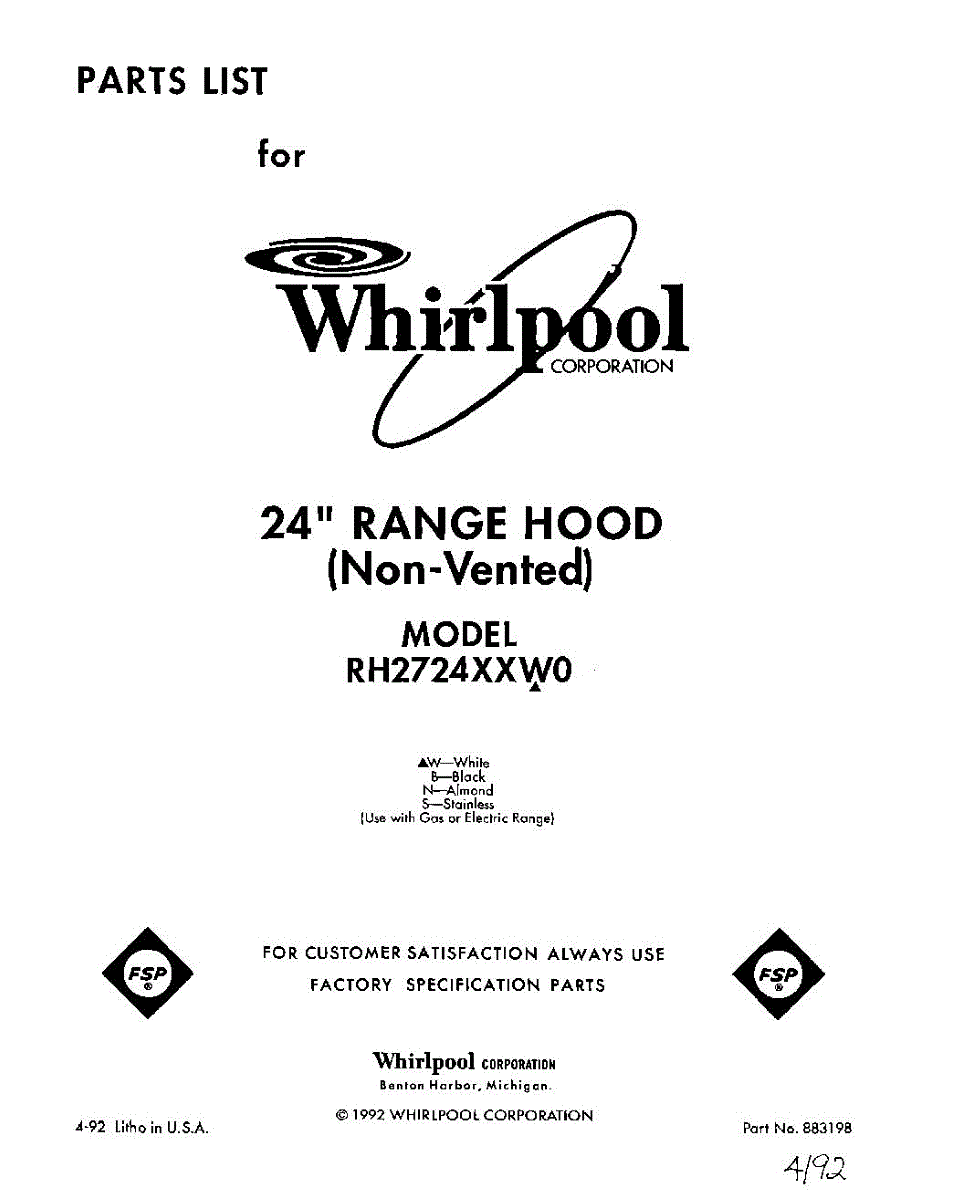 Parts for Whirlpool RH2724XXB0: 01 - Section Parts