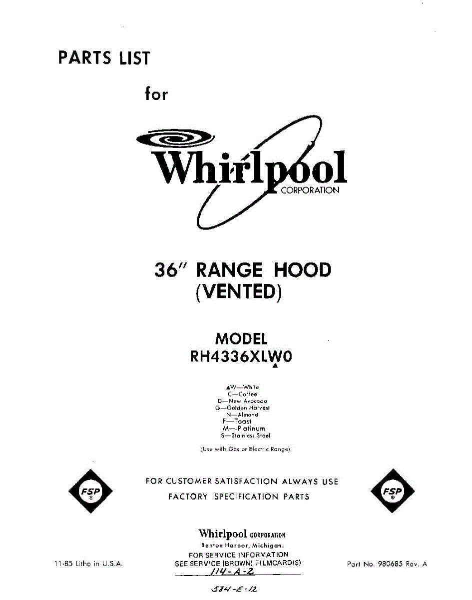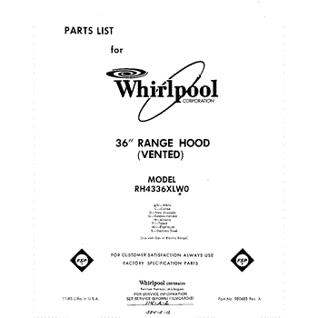 Parts for Whirlpool RH4336XLW0: 01 - Section Parts